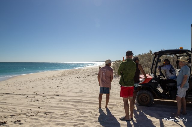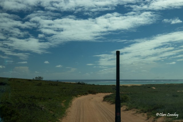 Continuing on north, we reached the turnoff to Cleaverville Beach and hit the dirt road – lots of red dust kicking up behind the vans…