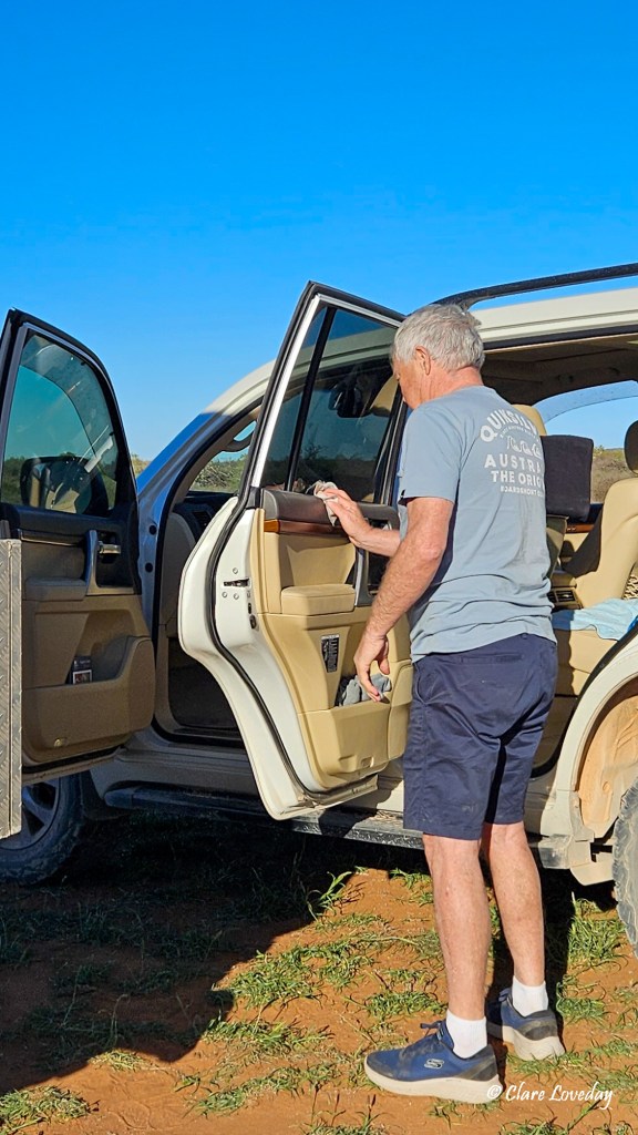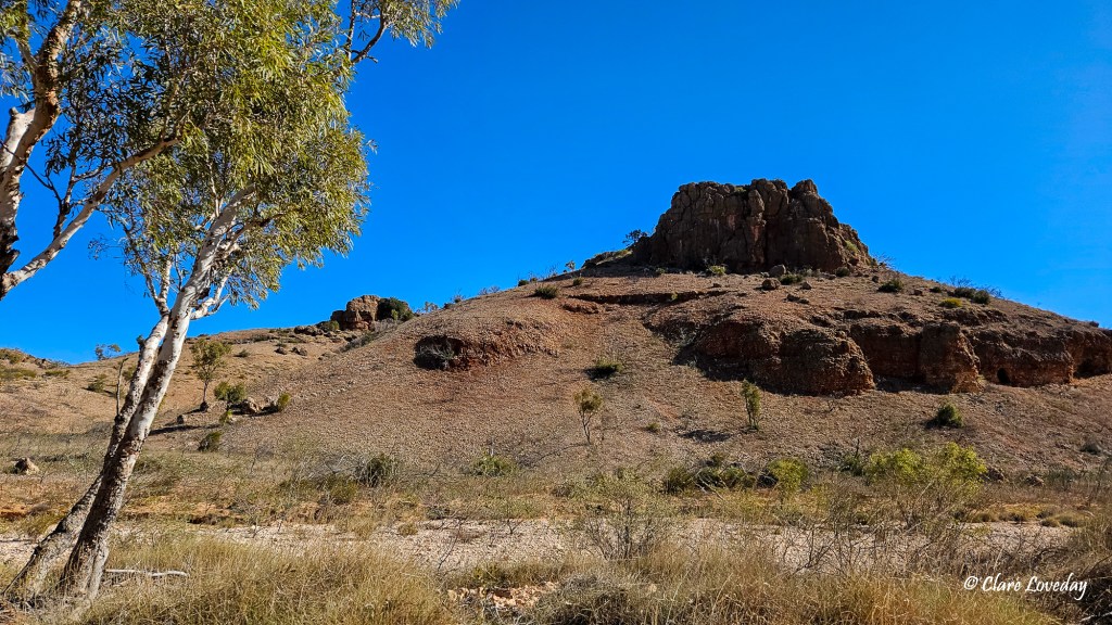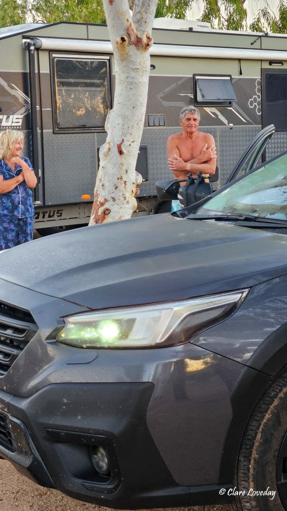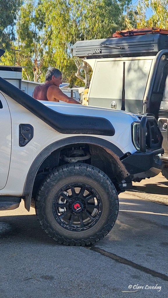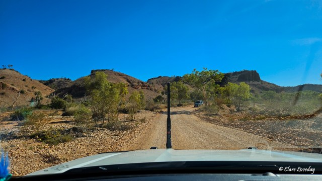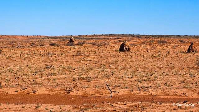 Everything is so arid and dry – we travelled over dry riverbeds which occasionally had mud puddles in them… lots of red dirt and spinifex….