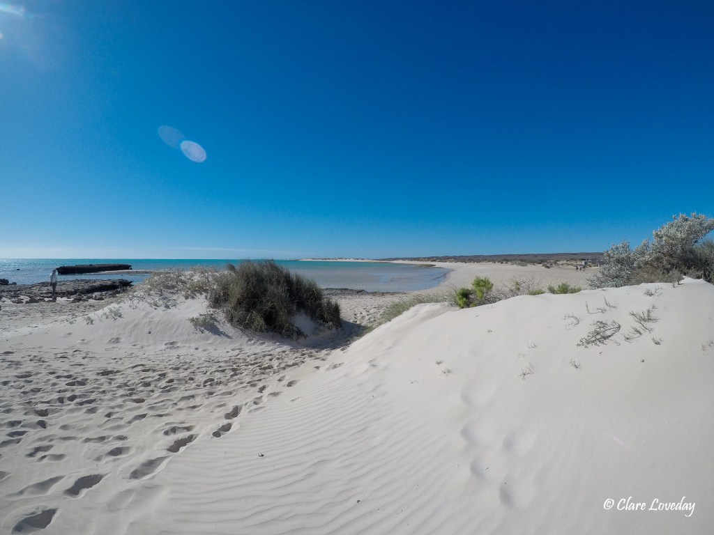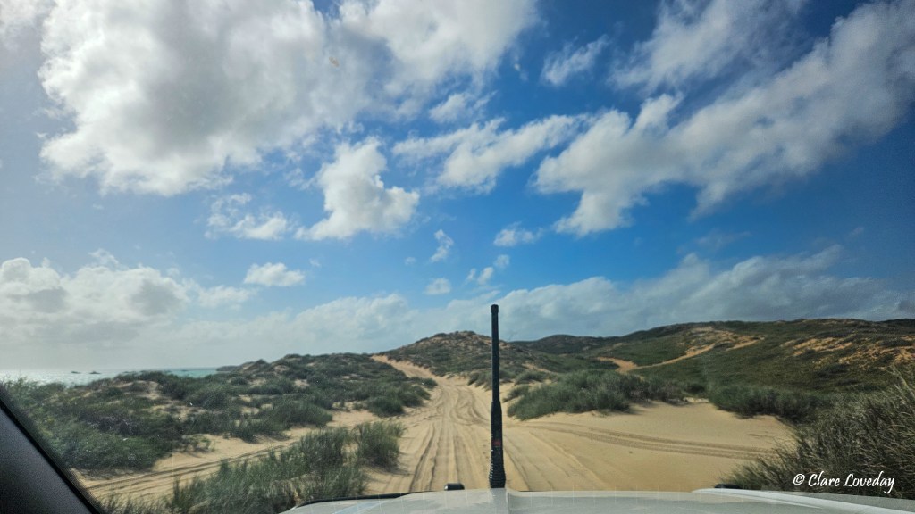 Our destination today was about 30 mins north of Karratha – Cleaverville Beach – so we packed up and left the free camp after having a great night together – despite Dave’s embarrassing marshmallow faux pas 😊… tricky managing those hot melted marshmallows around an open fire!!